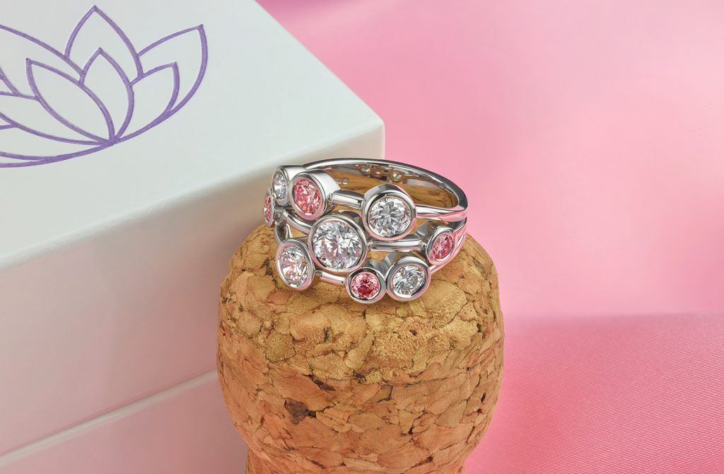Diamond bubble rings with lab-grown diamonds.